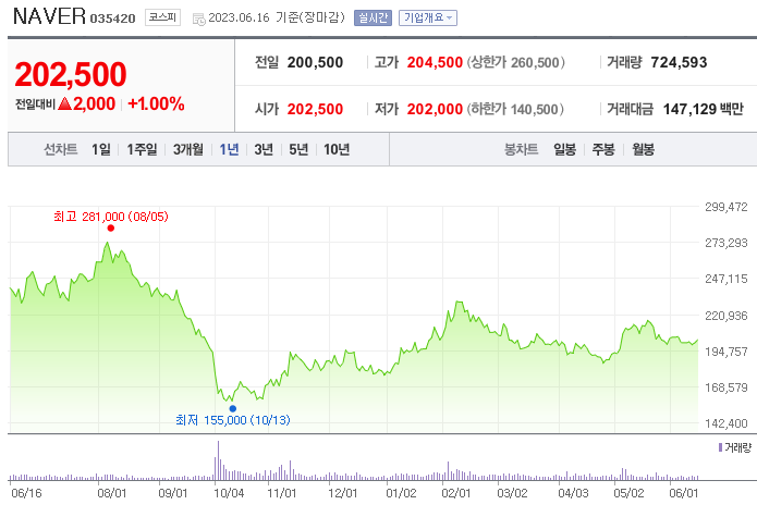 이 글에서는 네이버 주가 전망과 목표 주가, 기업 정보에 대해서 설명합니다. 주식을 시작하기 위해서는 기업의 상태와 주가 정보에 대해서 살펴보는 것이 굉장히 중요합니다. 네이버 주식의 주요 현황과 투자 정보를 확인하시고 주가 흐름을 파악해 보겠습니다.