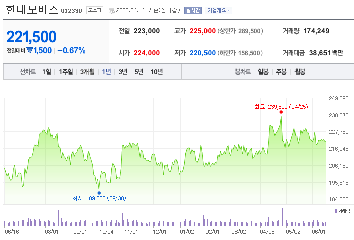이 글에서는 현대모비스 주가 전망과 목표 주가, 기업 정보에 대해서 설명합니다. 주식에 투자하기 전에는 기업 현황고 현재 시장 흐름에 대해서 살펴보는 것이 굉장히 중요합니다. 현대모비스 주식의 주요 현황과 투자 정보를 확인하시고 주가 흐름을 정리해 보겠습니다.