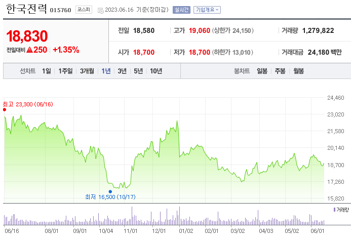이 글에서는 한국전력 주가 전망과 목표 주가, 기업 정보에 대해서 설명합니다. 주식에 투자하기 전에는 기업 현황고 현재 시장 흐름에 대해서 살펴보는 것이 필요합니다. 한국전력 주식의 주요 현황과 투자 정보를 확인하시고 현재 시장 현황을 살펴보겠습니다.