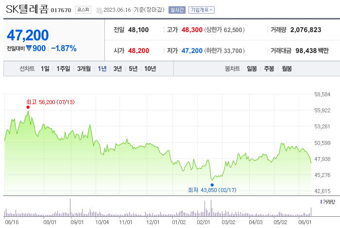이 글에서는 SK텔레콤 주가 전망과 목표 주가, 기업 정보에 대해서 설명합니다. 주식투자 전에 기업 현황고 현재 시장 흐름에 대해서 살펴보는 것은 굉장히 중요합니다. SK텔레콤 주식의 주요 현황과 투자 정보를 확인하시고 주가 흐름을 파악해 보겠습니다.