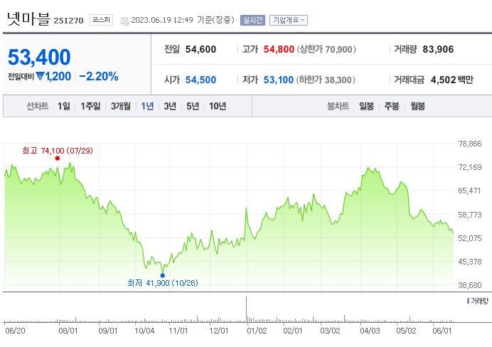 이 글에서는 넷마블 주가 전망과 목표 주가, 기업 정보에 대해서 설명합니다. 주식 투자를 하려면 정확한 기업 정보와 주가 현황에 대해 살펴보는 것이 굉장히 중요합니다. 넷마블 주식의 주요 현황과 투자 정보를 확인하시고 지금 시장에서 위치를 파악해 보겠습니다.