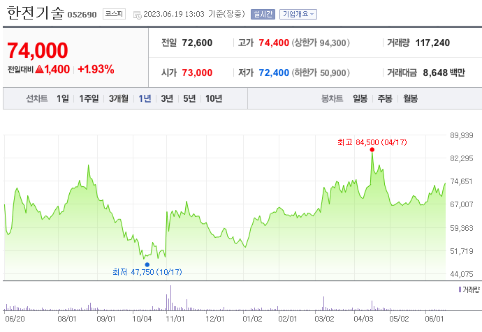 이 글에서는 한전기술 주가 전망과 목표 주가, 기업 정보에 대해서 설명합니다. 주식에 투자하기 전에는 기업 정보를 확인하고 주가 정보에 대해 분석하는 것이 필요합니다. 한전기술 주식의 주요 현황과 투자 정보를 확인하시고 지금 시장 흐름을 살펴보겠습니다.