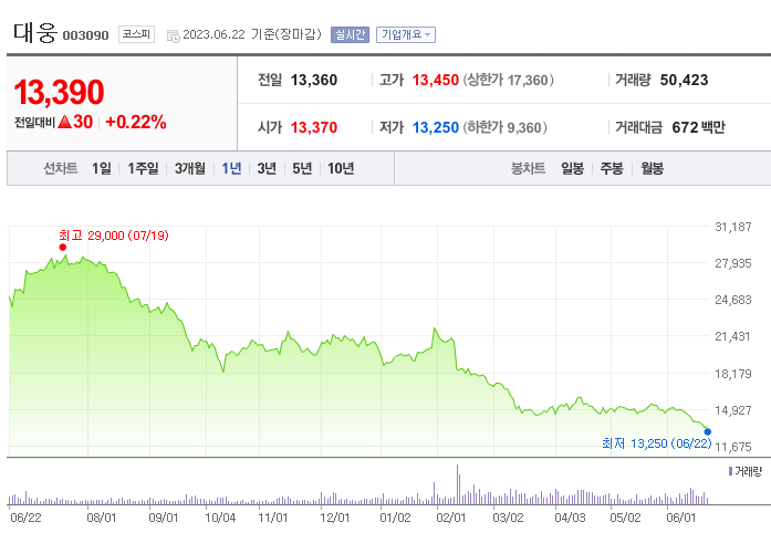 이 글에서는 대웅 주가 전망과 목표 주가, 기업 정보에 대해서 설명합니다. 주식 투자에 앞서 정확한 기업 정보와 주가 현황에 대해 알아보는 것은 매우 중요합니다. 대웅 주식의 주요 현황과 투자 정보를 확인하시고 주가 흐름을 정리해보겠습니다.