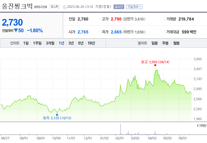 이 글에서는 웅진씽크빅 주가 전망과 목표 주가, 기업 정보에 대해서 설명합니다. 주식 투자를 하려면 기업 주가와 재무 현황표에 대해서 알아보는 것은 아주 중요합니다. 웅진씽크빅 주식의 주요 현황과 투자 정보를 확인하시고 지금 시장 흐름을 살펴보겠습니다.
