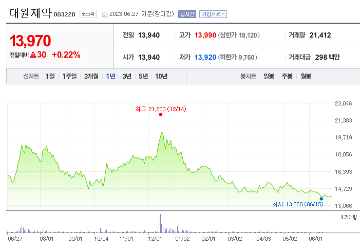 이 글에서는 대원제약 주가 전망과 목표 주가, 기업 정보에 대해서 설명합니다. 주식 투자를 하려면 기업 주가 정보와 재무 상태를 살펴보는 것이 굉장히 중요합니다. 대원제약 주식의 주요 현황과 투자 정보를 확인하시고 주가 흐름을 정리해보겠습니다.