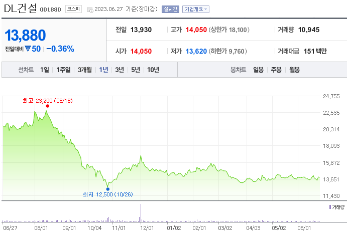 이 글에서는 DL건설 주가 전망과 목표 주가, 기업 정보에 대해서 설명합니다. 주식에 투자하기 전에는 기업의 상태와 주가 정보에 대해서 살펴보는 것이 굉장히 중요합니다. DL건설 주식의 주요 현황과 투자 정보를 확인하시고 현재 시장 현황을 살펴보겠습니다.