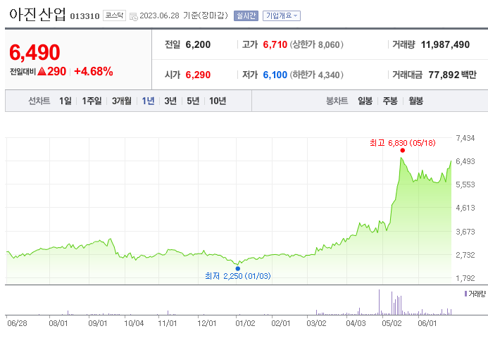 아진산업 주가 분석