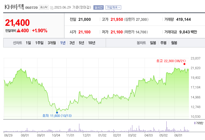 KH바텍 주가 전망 현황과 주식에서 기업 순위