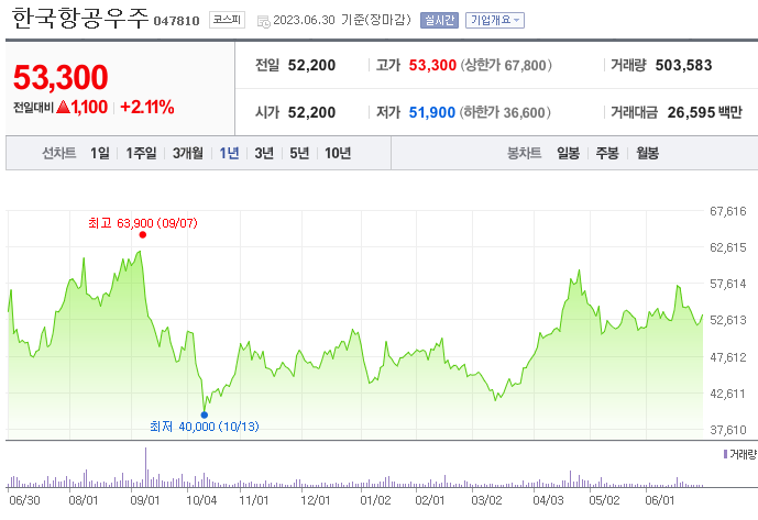 이 글에서는 한국항공우주 주가 전망과 목표 주가, 기업 정보에 대해서 설명합니다. 주식을 사기 전에 기업 주가와 재무 현황표에 대해서 알아보는 것은 아주 중요합니다. 한국항공우주 주식의 주요 현황과 투자 정보를 확인하시고 주가 흐름을 파악해보겠습니다.