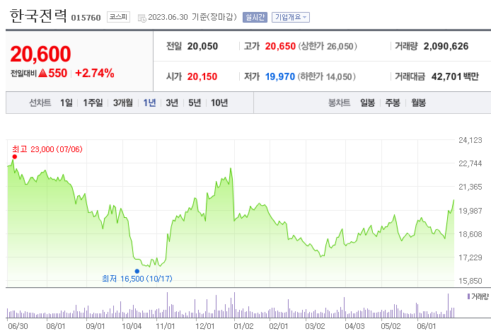 이 글에서는 한국전력 주가 전망과 목표 주가, 기업 정보에 대해서 설명합니다. 주식 투자에 앞서 기업 정보를 확인하고 주가 정보에 대해 알아보는 것은 아주 중요합니다. 한국전력 주식의 주요 현황과 투자 정보를 확인하시고 현재 시장에서의 흐름을 파악해 보겠습니다.