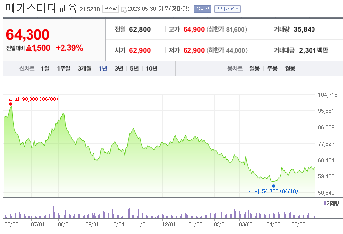 이 글에서는 메가스터디교육 주가 전망과 목표 주가, 기업 정보에 대해서 설명합니다. 주식을 보기 전에 기업 정보를 확인하고 주가 정보에 대해 정리해 보는 것은 아주 중요합니다. 메가스터디교육 주식의 주요 현황과 투자 정보를 확인하시고 주가 흐름을 정리해 보겠습니다.