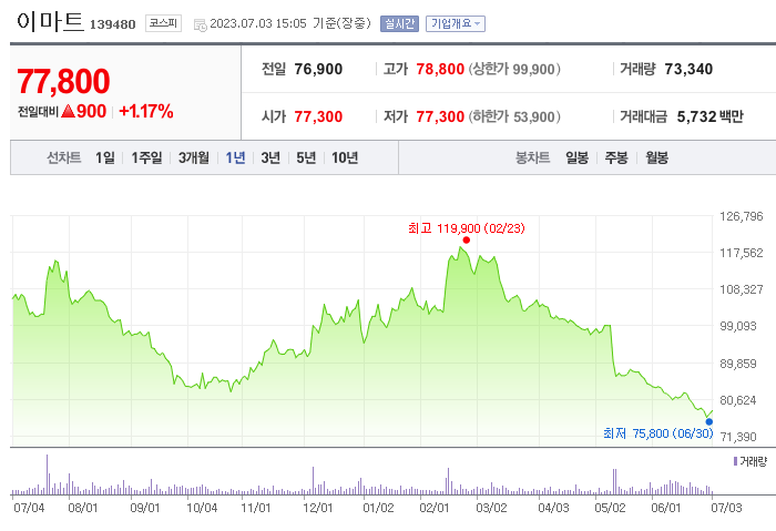 이 글에서는 이마트 주가 전망과 목표 주가, 기업 정보에 대해서 설명합니다. 주식 투자 전에 기업의 주가와 재무 정보에 대해서 살펴보는 것이 필요합니다. 이마트 주식의 주요 현황과 투자 정보를 확인하시고 현재 시장 현황을 살펴보겠습니다.