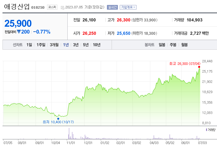 이 글에서는 애경산업 주가 전망과 목표 주가, 기업 정보에 대해서 설명합니다. 주식을 사기 전에 기업 정보를 확인하고 주가 정보에 대해 살펴보는 것은 매우 중요합니다. 애경산업 주식의 주요 현황과 투자 정보를 확인하시고 주가 흐름을 파악해보겠습니다.