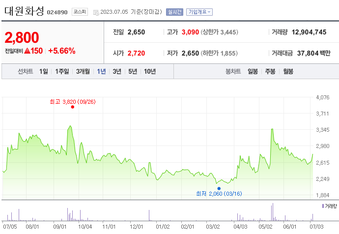 이 글에서는 대원화성 주가 전망과 목표 주가, 기업 정보에 대해서 설명합니다. 주식을 시작하기 위해서는 기업의 상태와 주가 정보에 대해서 알아보는 것은 아주 중요합니다. 대원화성 주식의 주요 현황과 투자 정보를 확인하시고 주가 흐름을 파악해보겠습니다.