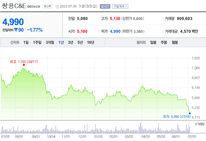 이 글에서는 쌍용C&E 주가 전망과 목표 주가, 기업 정보에 대해서 설명합니다. 주식투자 전에 기업의 상태와 주가 정보에 대해서 살펴보는 것은 굉장히 중요합니다. 쌍용C&E 주식의 주요 현황과 투자 정보를 확인하시고 지금 시장 흐름을 살펴보겠습니다.