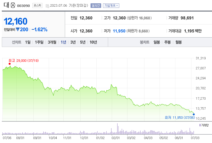 이 글에서는 대웅 주가 전망과 목표 주가, 기업 정보에 대해서 설명합니다. 주식을 알아보기 전에 기업의 상태와 주가 정보에 대해서 분석하는 것이 필요합니다. 대웅 주식의 주요 현황과 투자 정보를 확인하시고 주가 현황을 시장에 맞춰서 분석해보겠습니다.