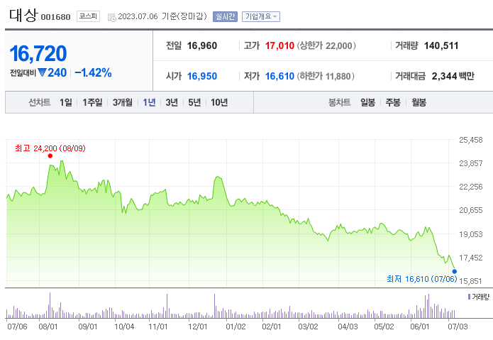 대상 주가 분석