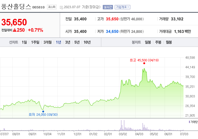 풍산홀딩스 주가 전망 상태 시장 흐름 분석
