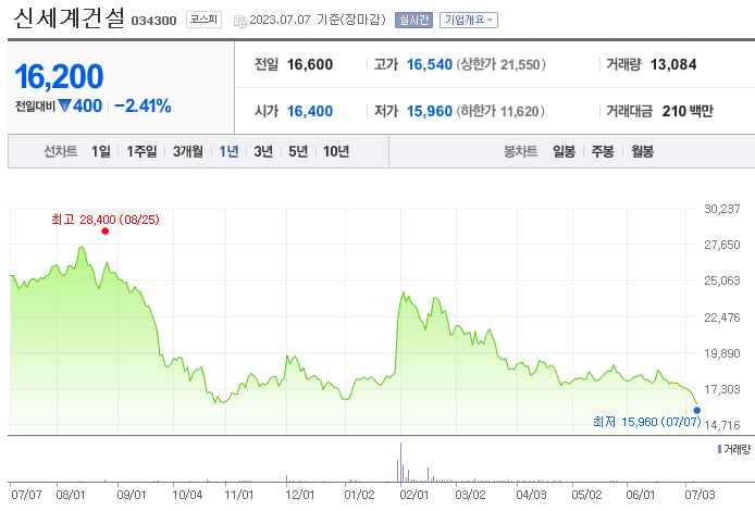 신세계건설 현재 주가는 16,200원이며 전일 대비 -400원의 모습을 보이고 있습니다. 신세계건설의 주주현황을 살펴보면 이마트(외 1인)이 지분 42.70%를 소유하고 있습니다. 신세계건설는 건설 기업으로 장중 기준으로 주가는 16,200원 입니다. 신세계건설의 시가 총액은 648억 원이며 발행 주식수는 5.25주 입니다.