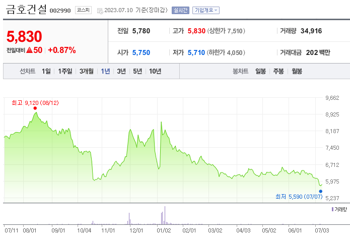 금호건설 주가 전망 분석표와 기업 정보 알아보기