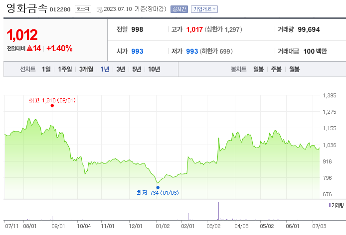 영화금속 주가 분석