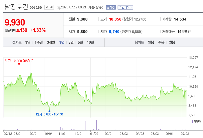 이 글에서는 남광토건 주가 전망과 목표 주가, 기업 정보에 대해서 설명합니다. 주식을 사기 전에 정확한 기업 정보와 주가 현황에 대해 살펴보는 것은 굉장히 중요합니다. 남광토건 주식의 주요 현황과 투자 정보를 확인하시고 현재 시장에서의 흐름을 파악해 보겠습니다.