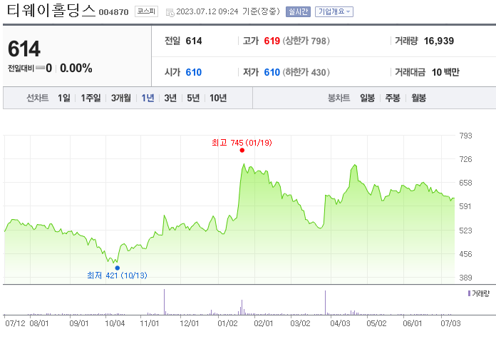 이 글에서는 티웨이홀딩스 주가 전망과 목표 주가, 기업 정보에 대해서 설명합니다. 주식을 보기 전에 기업 현황고 현재 시장 흐름에 대해서 정리해보는 것은 아주 중요합니다. 티웨이홀딩스 주식의 주요 현황과 투자 정보를 확인하시고 현재 시장에서의 흐름을 파악해 보겠습니다.