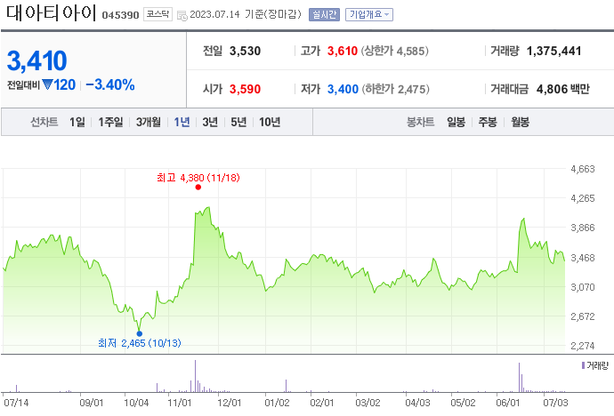 이 글에서는 대아티아이 주가 전망과 목표 주가, 기업 정보에 대해서 설명합니다. 주식을 시작하기 위해서는 기업 주가와 재무 현황표에 대해서 살펴보는 것이 필요합니다. 대아티아이 주식의 주요 현황과 투자 정보를 확인하시고 주가 흐름을 파악해보겠습니다.