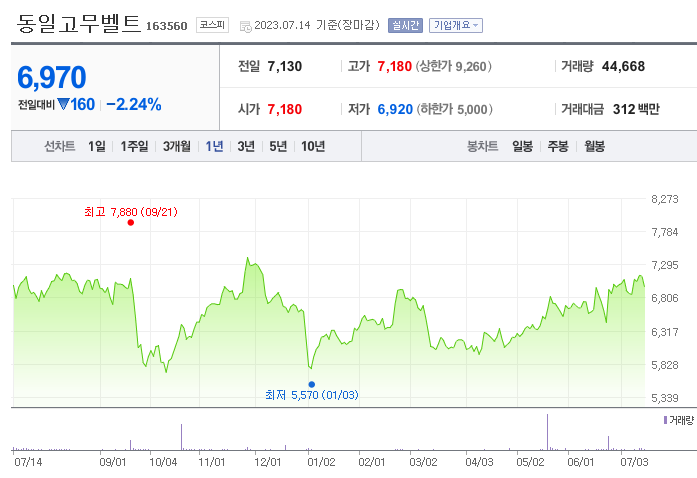 동일고무벨트 주가 분석