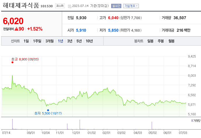 해태제과식품 주가 전망 현황과 주식에서 기업 순위
