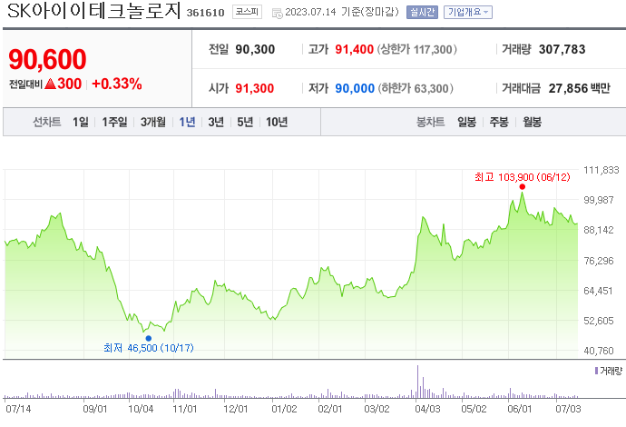 SK아이이테크놀로지 주가 분석