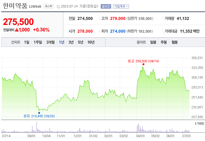 이 글에서는 한미약품 주가 전망과 목표 주가, 기업 정보에 대해서 설명합니다. 주식에 투자하기 전에는 기업의 현재 주가와 재무 상태에 관해서 알아보는 것은 매우 중요합니다. 한미약품 주식의 주요 현황과 투자 정보를 확인하시고 지금 시장 흐름을 살펴보겠습니다.