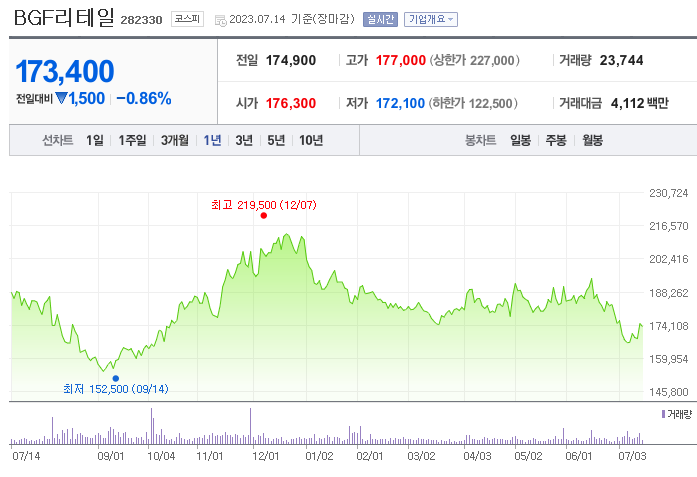 이 글에서는 BGF리테일 주가 전망과 목표 주가, 기업 정보에 대해서 설명합니다. 주식을 시작하기 위해서는 기업의 상태와 주가 정보에 대해서 살펴보는 것이 중요합니다. BGF리테일 주식의 주요 현황과 투자 정보를 확인하시고 주가 흐름을 파악해보겠습니다.