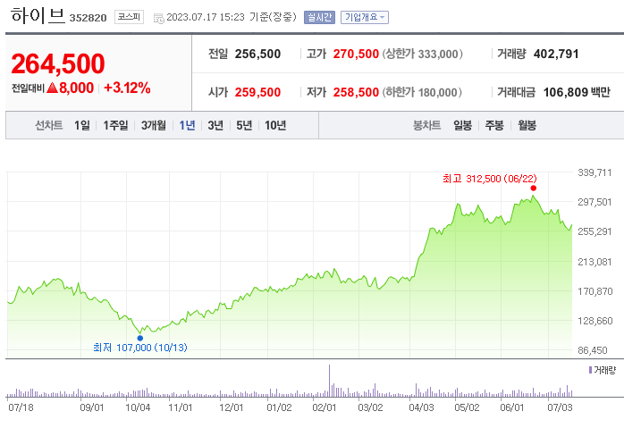 하이브 주가 분석