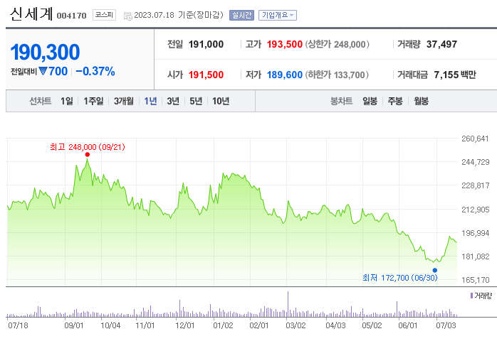 신세계 주가 분석