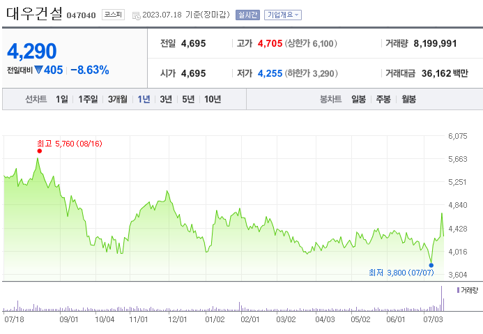 이 글에서는 대우건설 주가 전망과 목표 주가, 기업 정보에 대해서 설명합니다. 주식을 알아보기 전에 기업의 상태와 주가 정보에 대해서 살펴보는 것은 굉장히 중요합니다. 대우건설 주식의 주요 현황과 투자 정보를 확인하시고 지금 시장에서 위치를 파악해보겠습니다.