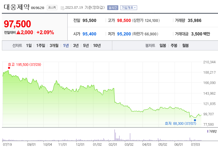 대웅제약 주가 전망 상태 시장 흐름 분석
