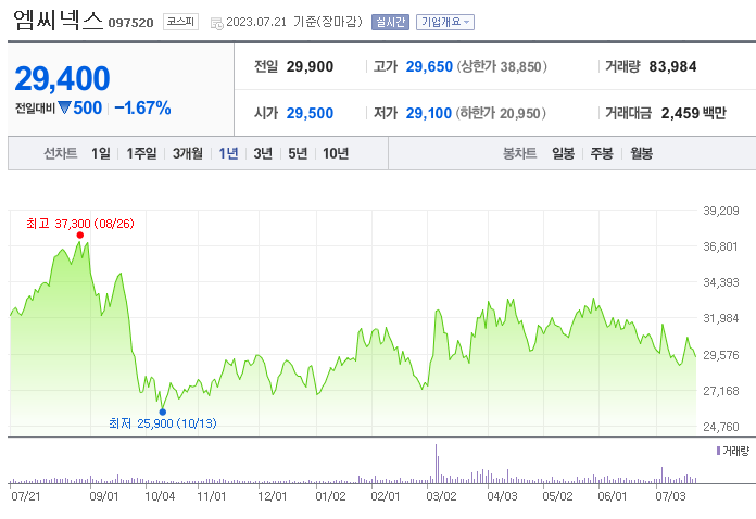엠씨넥스 주가 분석