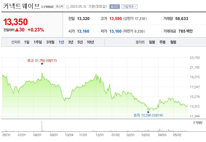 커넥트웨이브 주가 전망 상태 시장 흐름 분석