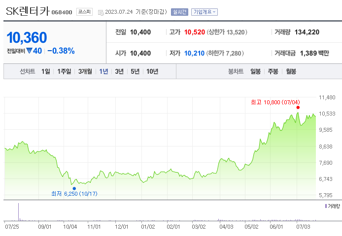 SK렌터카 주가 전망 상태 시장 흐름 분석