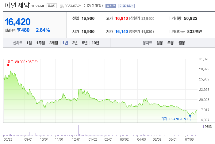 이 글에서는 이연제약 주가 전망과 목표 주가, 기업 정보에 대해서 설명합니다. 주식을 알아보기 전에 정확한 기업 정보와 주가 현황에 대해 살펴보는 것은 굉장히 중요합니다. 이연제약 주식의 주요 현황과 투자 정보를 확인하시고 현재 시장 현황을 살펴보겠습니다.