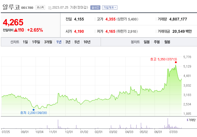 알루코 주가 분석