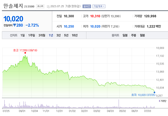 한솔제지 주식 결론