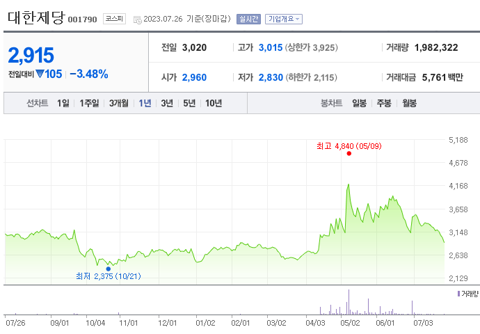대한제당 주가 전망 현황과 주식에서 기업 순위