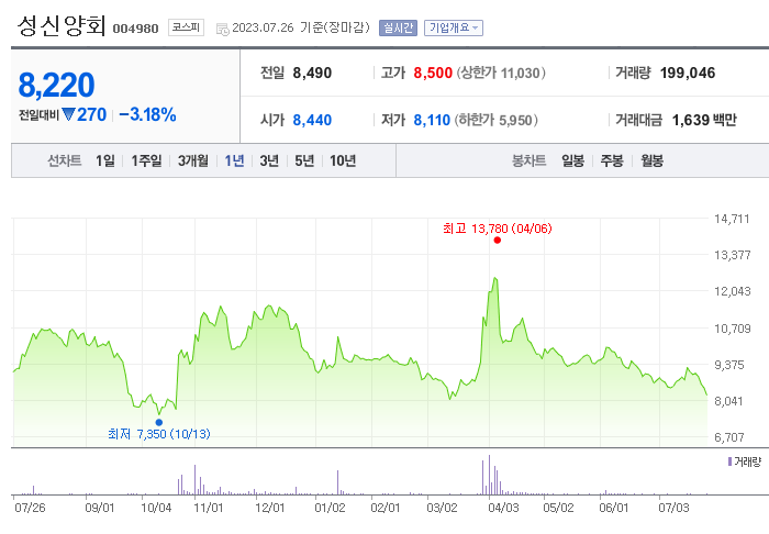 성신양회 주가 전망 상태 시장 흐름 분석