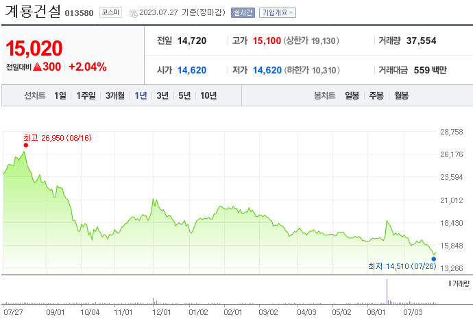 계룡건설 주가 전망 상태 시장 흐름 분석