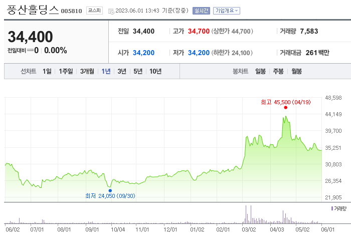 풍산홀딩스 주가 분석