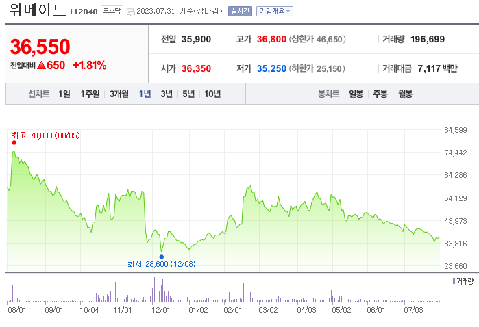 이 글에서는 위메이드 주가 전망과 목표 주가, 기업 정보에 대해서 설명합니다. 주식 투자에 앞서 기업 현황고 현재 시장 흐름에 대해서 살펴보는 것은 매우 중요합니다. 위메이드 주식의 주요 현황과 투자 정보를 확인하시고 주가 흐름을 정리해보겠습니다.