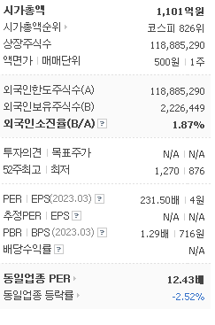 외국인 보유 비중은 462,858% 이며 장중 거래량은 118,885,290를 기록했습니다. 매출액은 568억 원, 영업이익은 77억 원을 달성했습니다. EPS는 없음원이며 동양철관 주식 배당수익률은 5.40% 입니다.