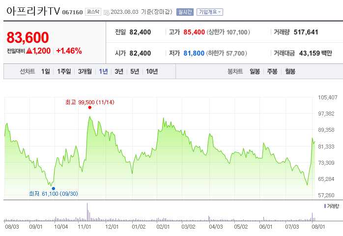 이 글에서는 아프리카TV 주가 전망과 목표 주가, 기업 정보에 대해서 설명합니다. 주식 투자를 하려면 정확한 기업 정보와 주가 현황에 대해 살펴보는 것이 중요합니다. 아프리카TV 주식의 주요 현황과 투자 정보를 확인하시고 지금 시장 상태를 분석해보겠습니다.